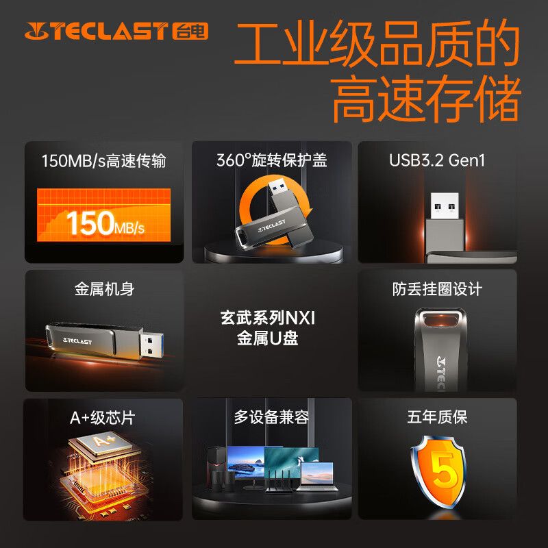 台电USB3.2 金属U盘 高速办公车载大容量优盘 玄武系列 32GB 台电USB3.2 金属U盘 高速办公车载大容量优盘 玄武系列 32GB