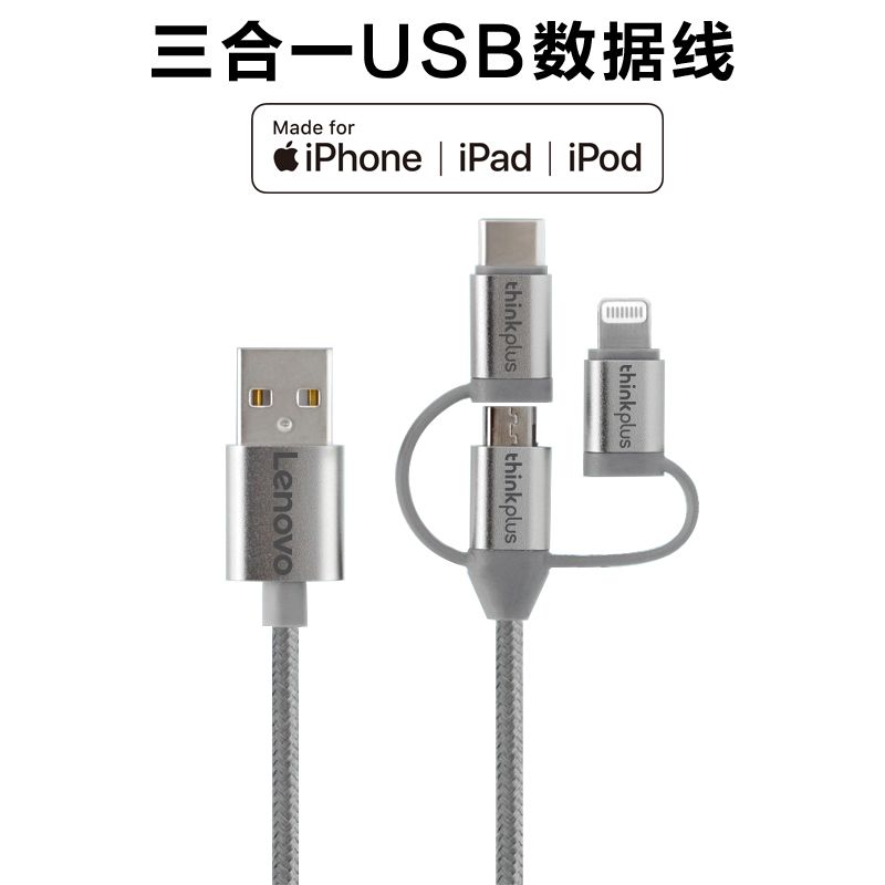 联想 数据线三合一MFi认证苹果充电线一拖三 华为安卓苹果通用 2.4A 1米 灰色 UMCL310H 联想 数据线三合一MFi认证苹果充电线一拖三 华为安卓苹果通用 2.4A 1米 灰色 UMCL310H