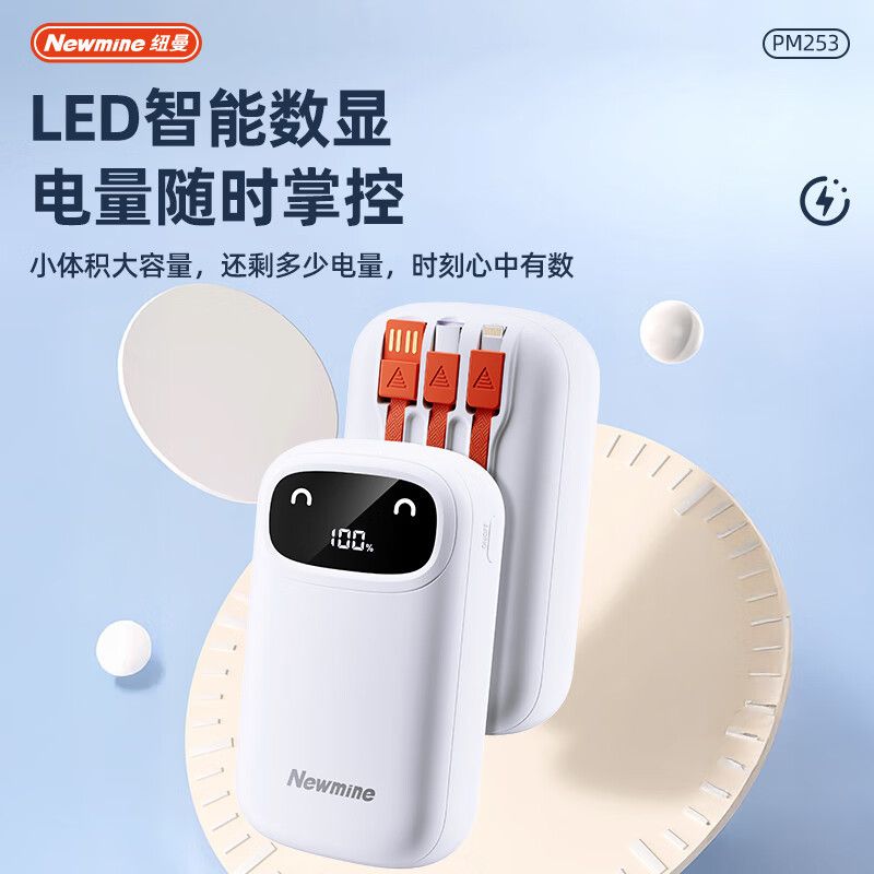 纽曼 (Newmine) 新国标3C认证 自带可拆卸线快充移动电源10000mAh大容量轻便小巧22.5w快充充电宝可携登机 白色 PY168 纽曼 (Newmine) 新国标3C认证 自带可拆卸线快充移动电源10000mAh大容量轻便小巧22.5w快充充电宝可携登机 白色 PY168